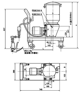(1)潤滑泵的外形尺寸 (2)帶小車潤滑裝置外形尺寸